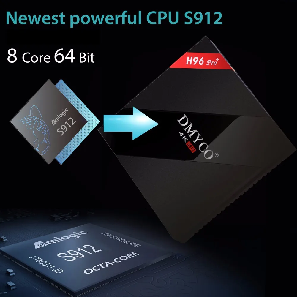 - Amlogic S912 64 bits Octa core ARM Cortex A53 CPU up to 2 GHz