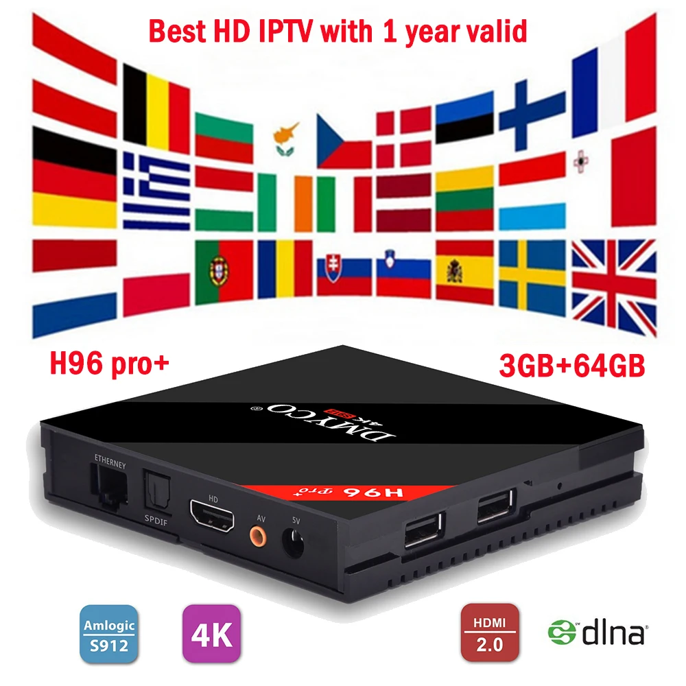 Cheap 3GB 64GB H96 pro Plus Android 7.1 Smart TV Box Amlogic S912 4K ultra HD IPTV French/Italy/Arabic/UK/NL/Poland Channels IP TV BOX offers