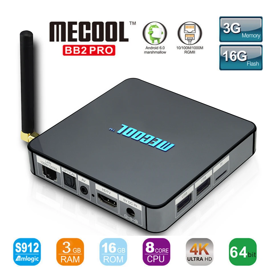 The At a minimum Expensive MECOOL BB2 Pro Android TV Box Amlogic S912 64 bit Octa core ARM Cortex-A53 3GB 16GB 4K WiFi BT4.0 2.4G/5.8G Wifi Set-top Boxes. See our great choice and good shipping. Shop on MECOOL BB2 Pro Android TV Box Amlogic S912 64 bit Octa core ARM Cortex-A53 3GB 16GB 4K WiFi BT4.0 2.4G/5.8G Wifi Set-top Boxes today. Best Price Promise! Now! Deal!.